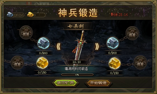 活动内容:活动期间,玩家通过放置火药,炸开矿洞获取百炼钢或百炼精钢后,锻造“神兵”。