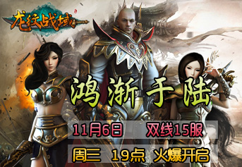 175ha《龙纹战域》双线15服“鸿渐于陆”将于11月6日19:00点震撼来袭,更为新鲜好玩的全新玩法系统,你想体验在游戏中玩家将扮演一名大陆游侠的感觉吗?你想挑战邪恶的力量吗?探索迷宫、击败恶魔、技能修炼、强化武器,尽在175ha《龙纹战域》!