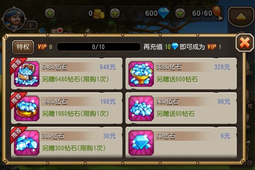 活动内容:首次在游戏内购买指定3款钻石礼包(每款限购一次),即可畅享3次钻石翻倍的快感!好运不容错过