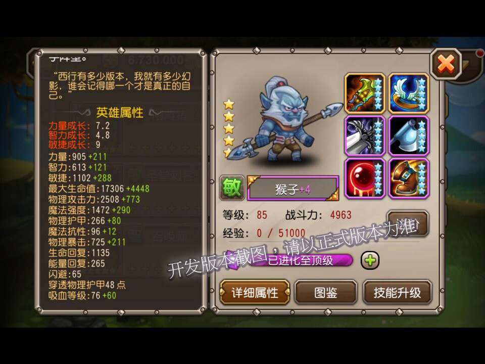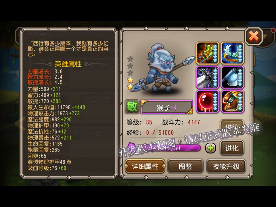 偷偷的告诉小伙伴们,小编还悄悄的带猴子上场试了试喔,当猴子触发三技能,长矛从上往下挥时,召唤出一个幻象在目标敌人的身后造成伤害并吸引敌人伤害。值得一提的是,当猴子触发二技能,召唤出2个幻象一起战斗时,猴子是往后退一步的,保证了幻象能抵挡伤害,猴子本体持续攻击敌人。至于其他技能是什么样的,还得小伙伴们亲自体验咯~
