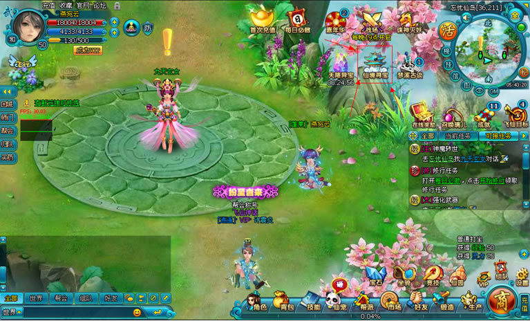 玩家达到60级以后,可以在主界面右上角的仙境寻宝图标里点击打开,如下图: