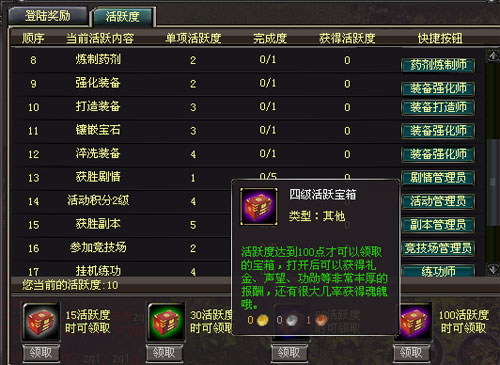 【战将online “龙战于野”活跃度奖励系统】