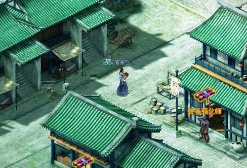 穿过青石街道来到“装备打造师”门前,青砖灰瓦的房屋,门口的长桌上摆放着各种兵刃,什么刀枪剑戟斧钺钩叉应有尽有,墙角的兵器架上数柄长枪寒光闪闪!门前几位侠客打扮的人正在挑选着心仪的兵器并不时与装备打造师攀谈着,就店主冶铁锻造的本事而言,他打造的天工装备自然是不会差的!