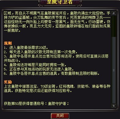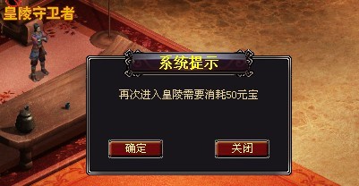 3、每天进入皇陵的次数无限制且第一次免费,从第二次开始,都需要花费一定数量的元宝;