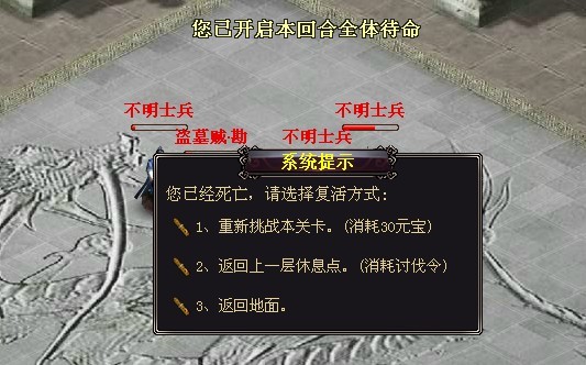 6、若不慎死亡,则可以选择选择如下图所示的三种方式复活。