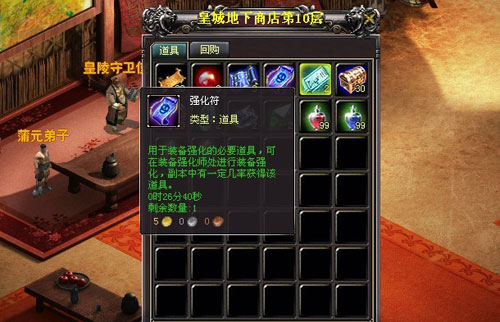 用游戏币买商城道具,正是方便玩家的一种人性化的设定。只要进入上古皇陵任何一层,然后点击“皇陵守卫使”,选择“皇陵地下商店”,想要什么商城道,点击就可以购买了。