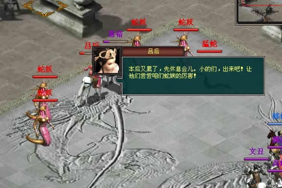 “上古皇陵”共有99层关卡,梦蛇使是任务里的其中一个大BOSS,要想克制她办法只有一个:解救被囚压的张良。张良被救后使用雷爆术,此时是击杀梦蛇使最佳时机,玩家将与张良共同击之。梦蛇使凶险狡诈、众蛇妖护卫勇猛善战,同时面对十几个大小BOSS,血战时刻即将来临。一举击败十余蛇妖,玩家将有机会得到战将Online全新80级极品天宫装备,超强属性非常让人期待。