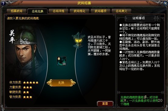 一身转战三千里,一剑曾当百万师。每个玩家玩三国游戏,经常为看着名将可望不可及而叹气,现在这一切都将成为浮云,各方名将集结《战将无二》,任你挑选,或可以通过剧情关卡,副本活动,擂台礼包各种方式取得魂魄,兑换名将;又或者可以通过招贤的刷新,获得你想要的武将。